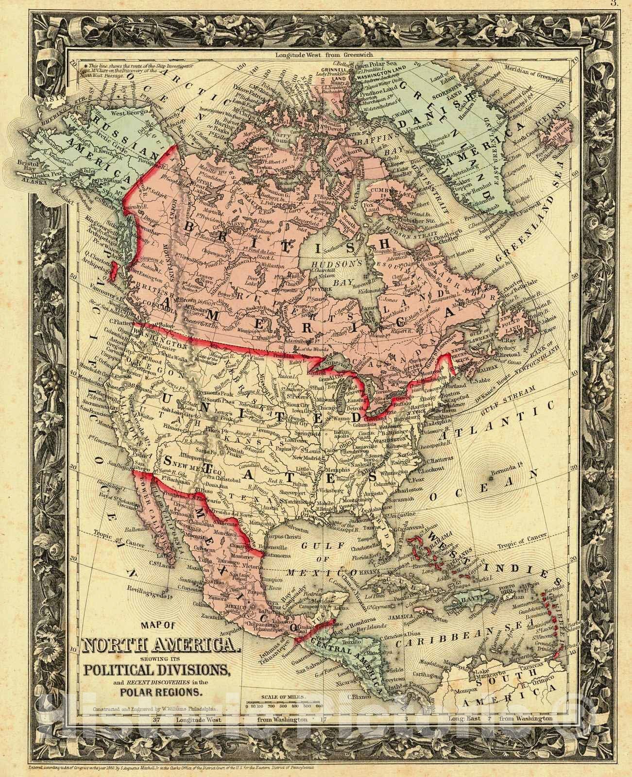 • Historic Map : 1861 Map of North America showing its Political Divisions : Vintage Wall Art