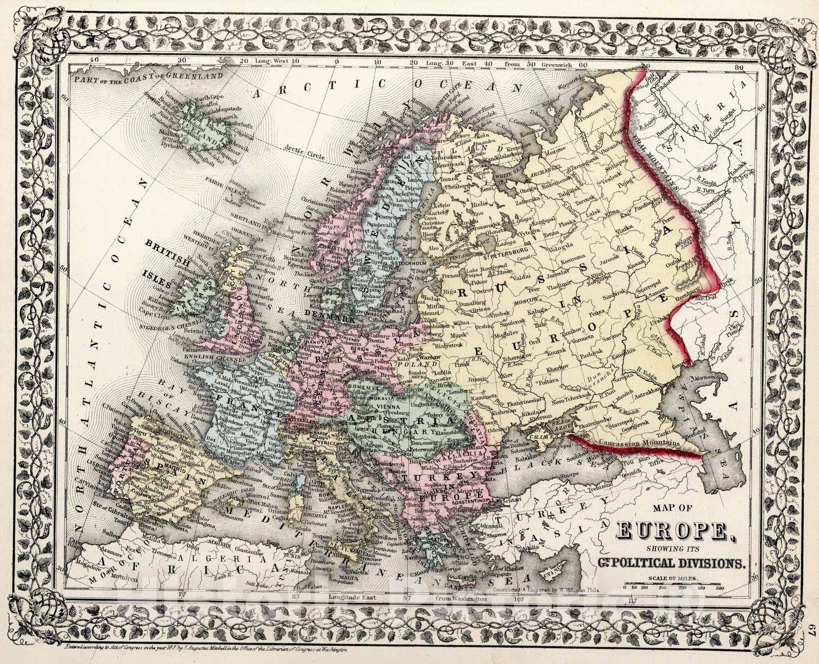 Historic Map : 1874 Map of Europe, showing its gt. political divisions - Vintage Wall Art