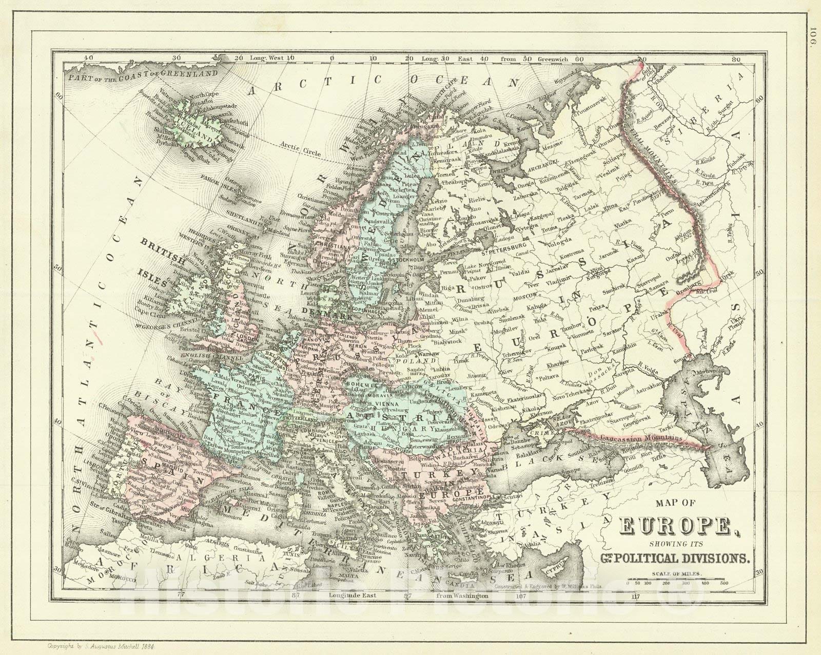 • Historic Map : 1886 Map of Europe showing its greater political divisions : Vintage Wall Art
