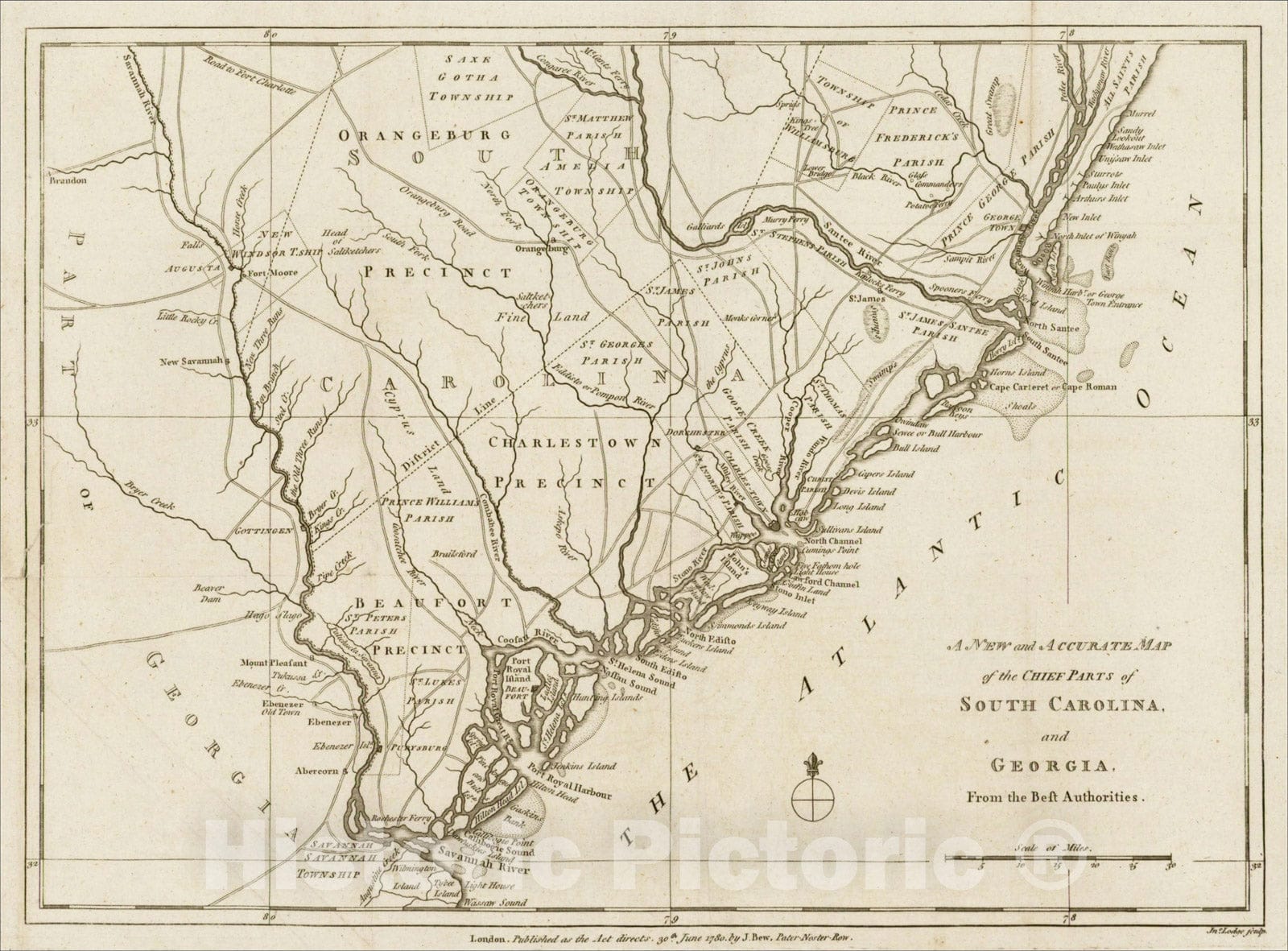 Historic Map : A New and Accurate Map of the Chief Part of South Carolina and Georgia from From the Best Authorities, 1780, Political Magazine, Vintage Wall Art