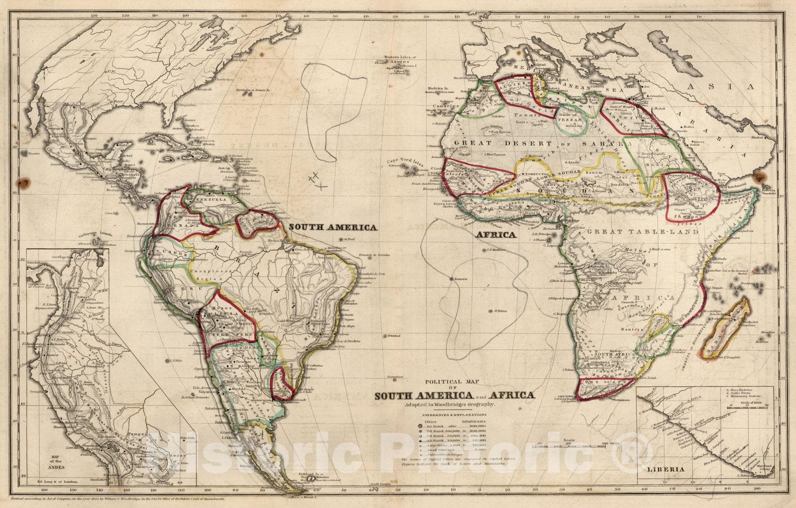 • Historic Map : School Atlas - 1849 Political Map Of South America And Africa - Vintage Wall Art