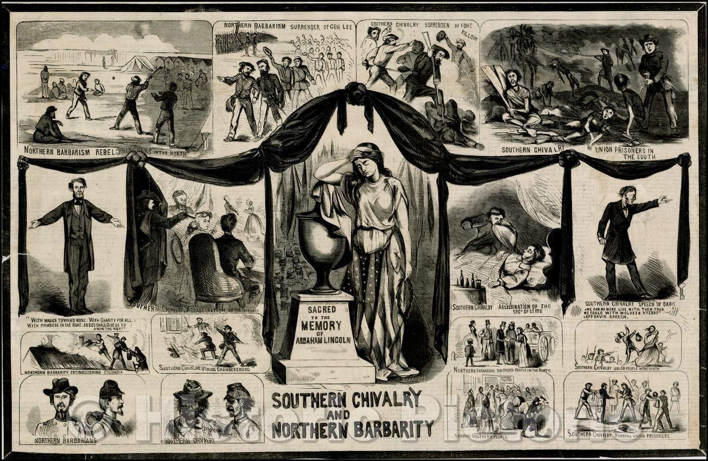 Historic Map - Southern Chivalry and Northern Barbarity (Satirical Political Cartoon), 1865, Anonymous - Vintage Wall Art
