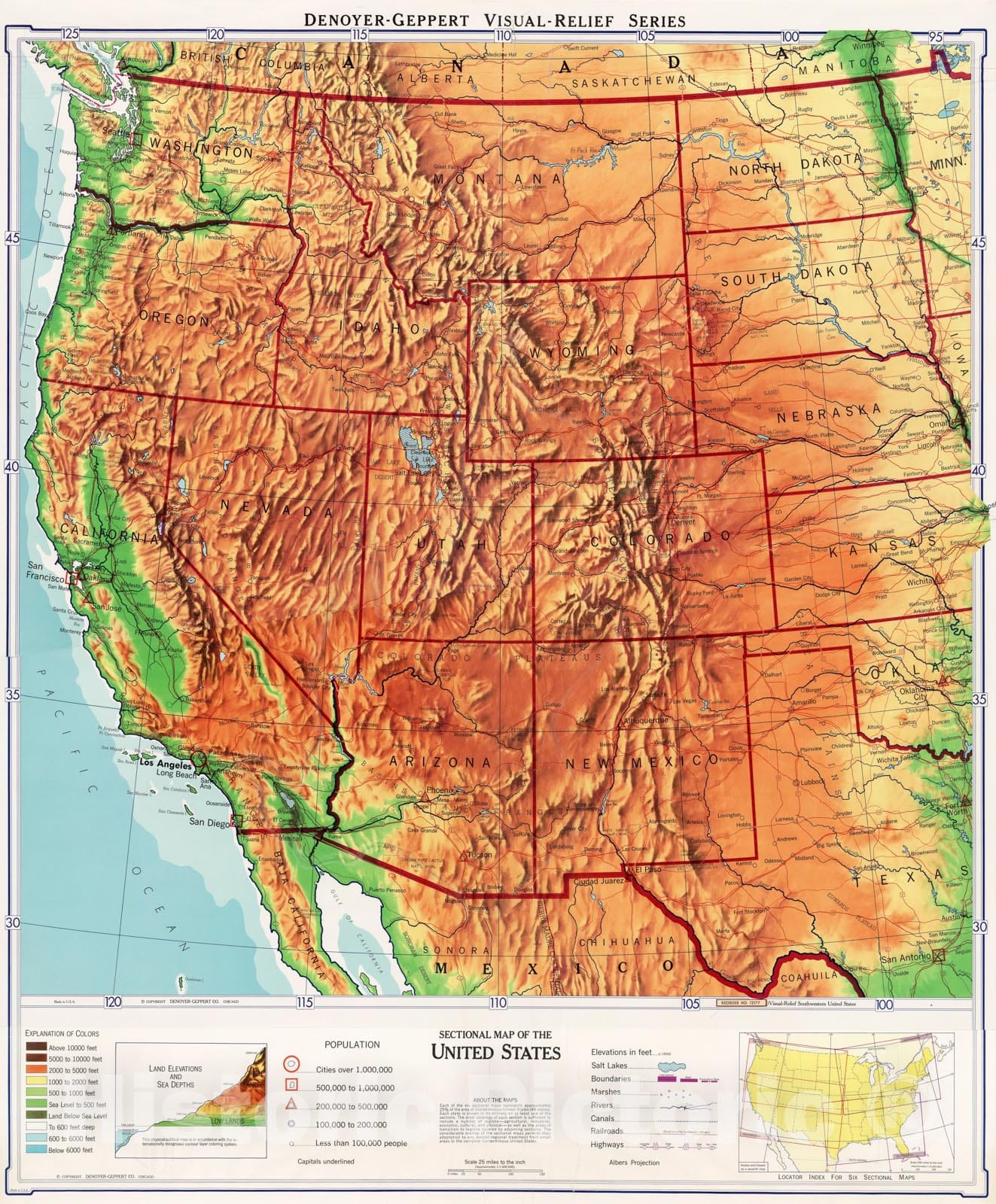 Historic Map - Wall Map, United States: Western - Physical-Political 1963, - Vintage Wall Art