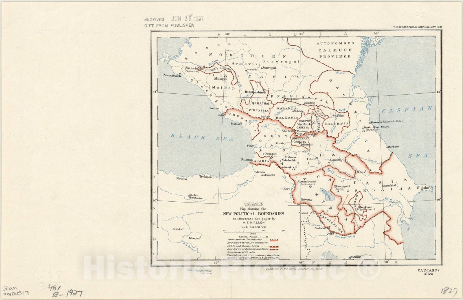 Map : Caucasus 1927, Caucasus : map showing the new political boundaries to illustrate the paper by W.E.D. Allen , Antique Vintage Reproduction