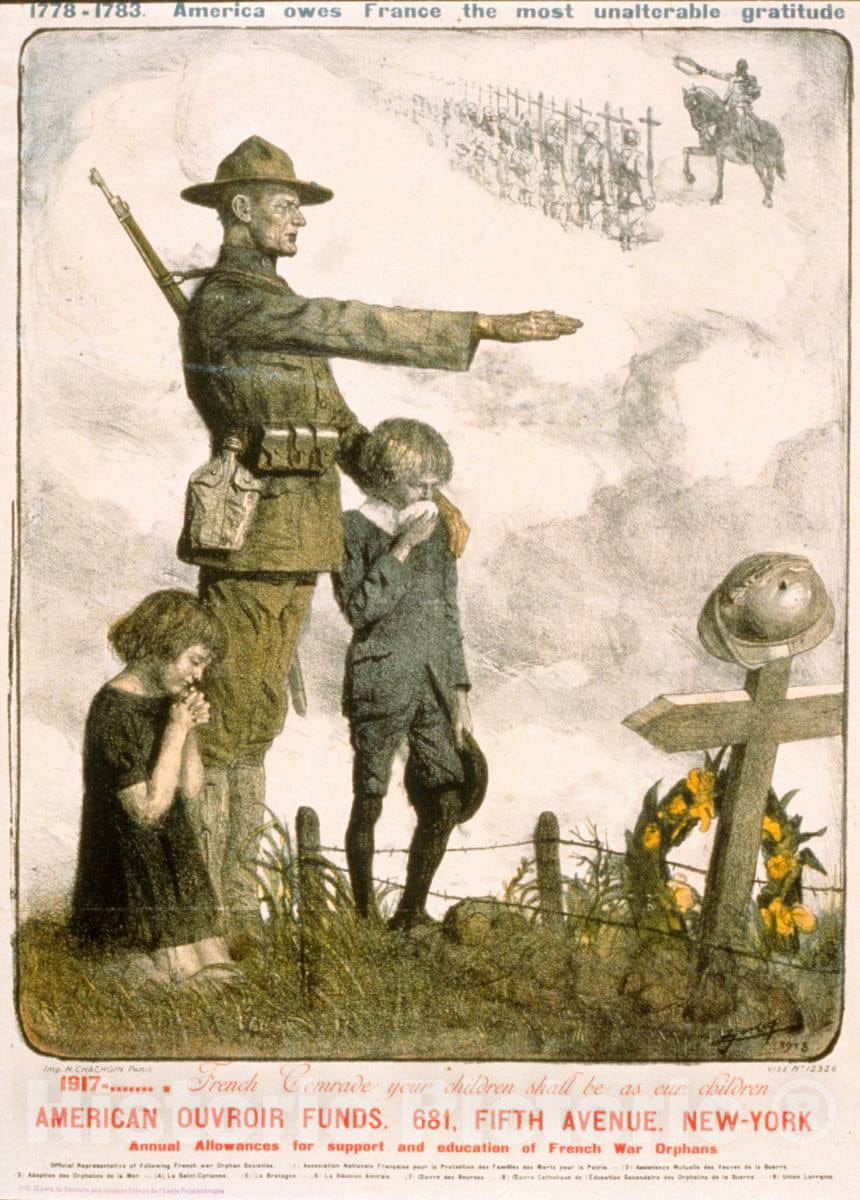 Vintage Poster - 1778 - 1783 America Owes France The Most unalterable Gratitude. 1917 - French Comrade, Your Children Shall be as Our Children. 1, Historic Wall Art
