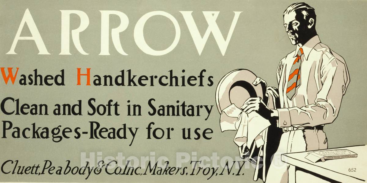 Vintage Poster - Arrow Washed handkerchiefs, Clean and Soft in Sanitary Packages 1, Historic Wall Art