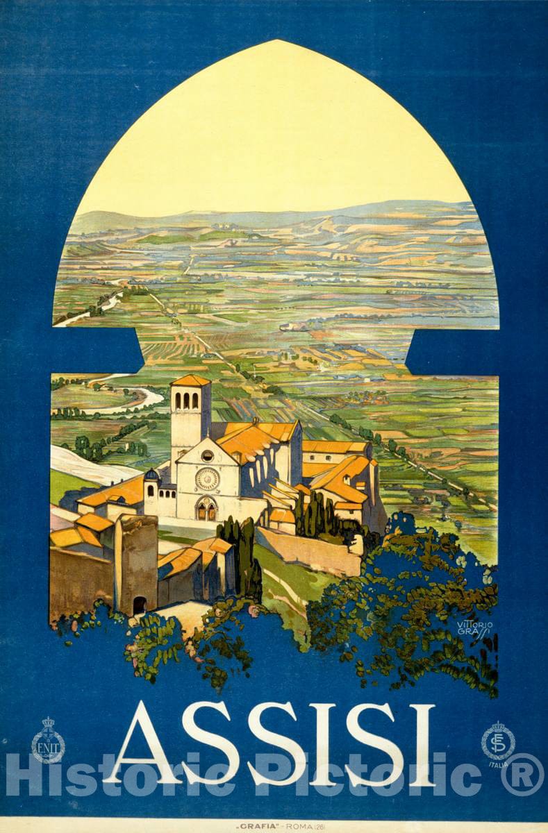 • Vintage Poster -  Assisi -  Vittorio Grassi., Historic Wall Art