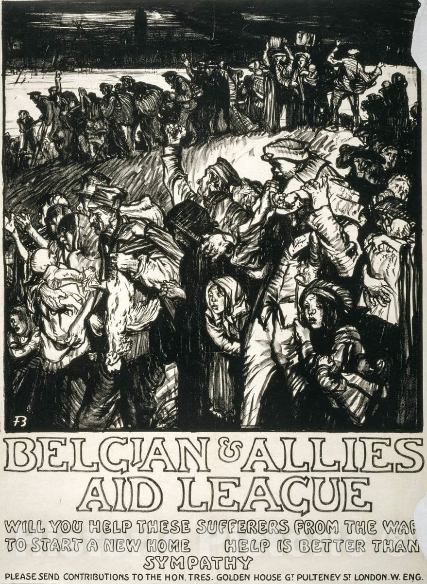 Vintage Poster - Belgian & Allies Aid League. Will You Help These sufferers from The war to Start a New Home. Help is Better Than Sympathy - Frank Brangwyn, Historic Wall Art