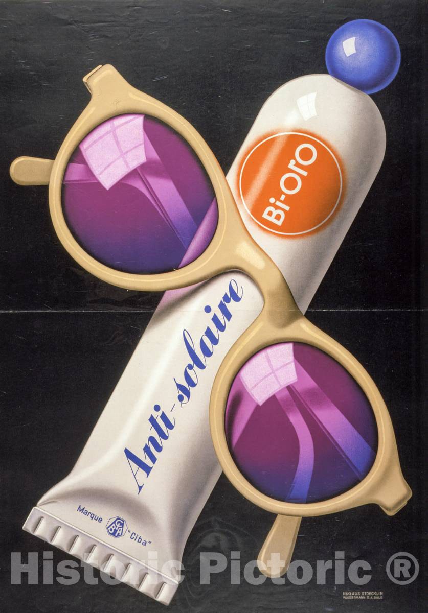Vintage Poster - Bi - Oro, Anti - Solaire Marque Ciba - Niklaus Stoecklin., Historic Wall Art