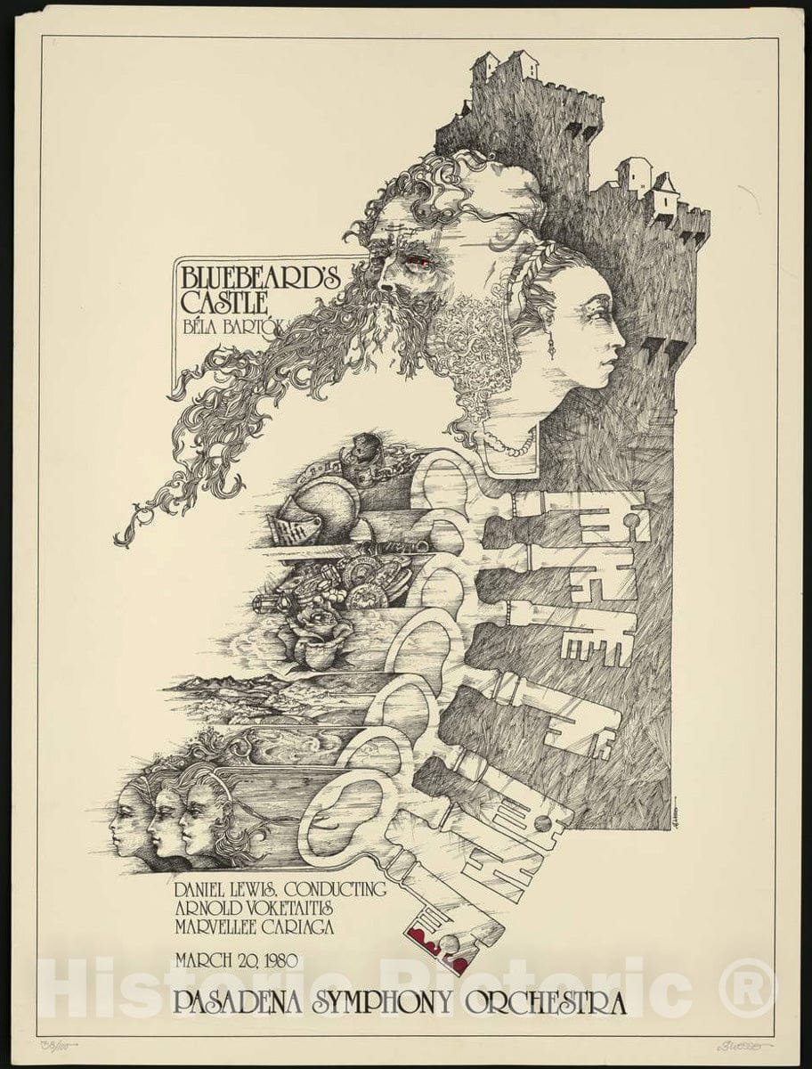 Vintage Poster - Bluebeard's Castle [by] Béla Bartók, March 20, 1980, Pasadena Symphony Orchestra, Historic Wall Art