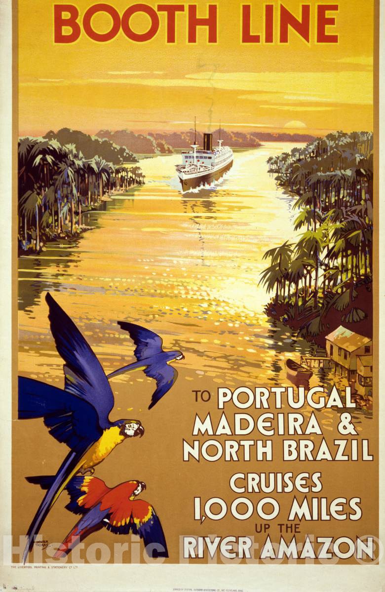 Vintage Poster - Booth Line, to Portugal, Madeira & North Brazil - Walter Thomas., Historic Wall Art