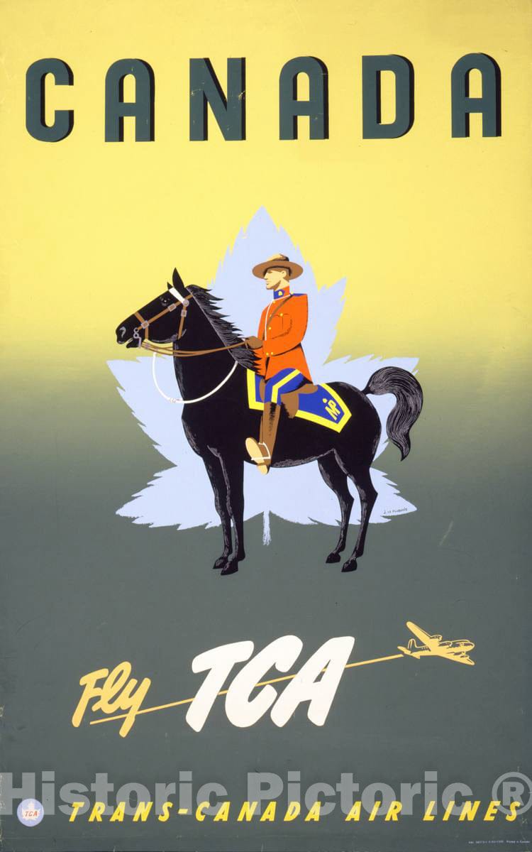 • .Vintage Poster - Canada -  Fly TCA, Trans - Canada Air Lines - J. Le Flaguais., Historic Wall Art