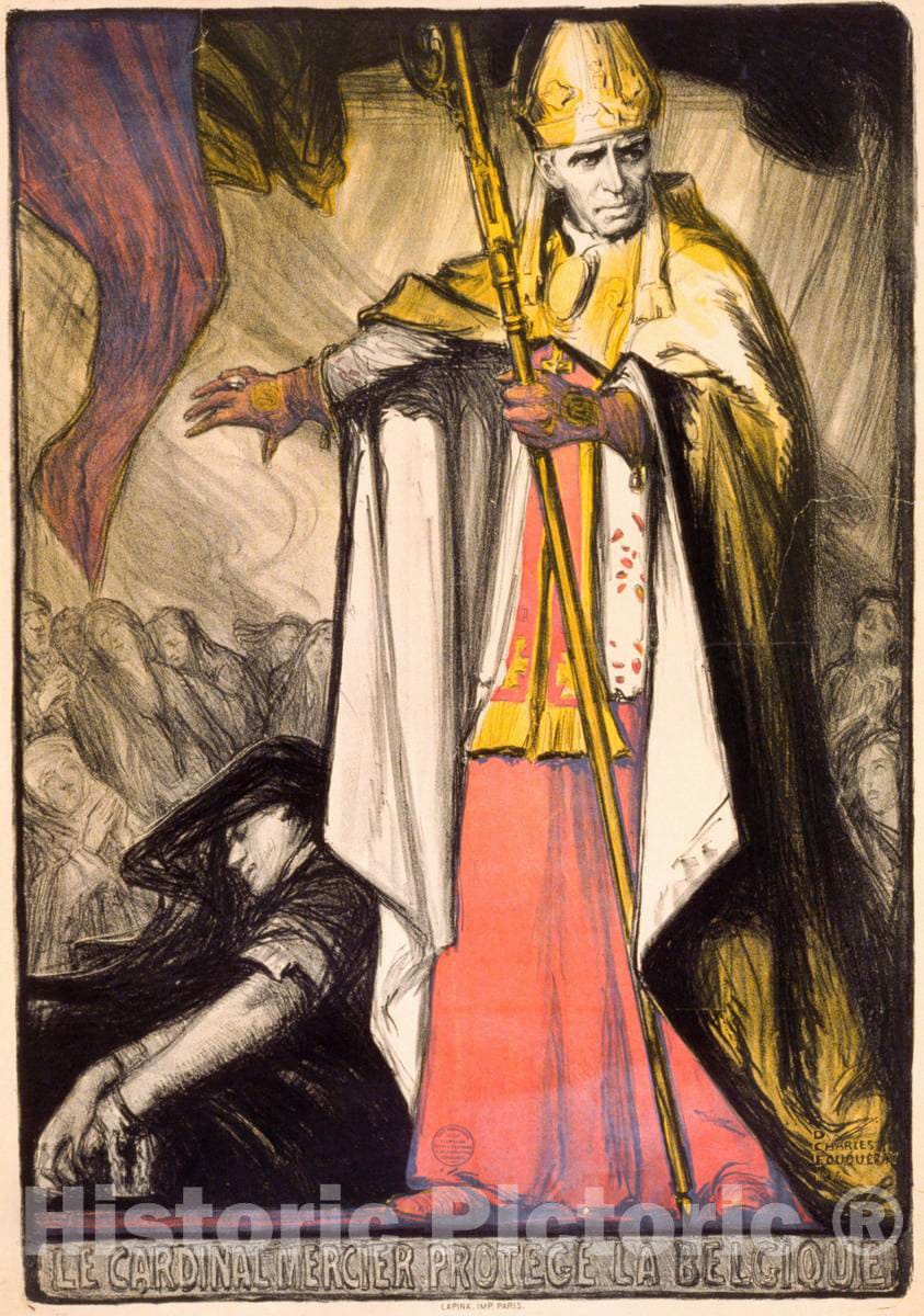 • Vintage Poster -  Le Cardinal Mercier protége la Belgique, Historic Wall Art