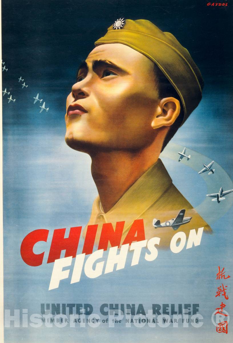 Vintage Poster - China Fights on - Gaydos ; United China Relief, Member Agency of The National War Fund., Historic Wall Art