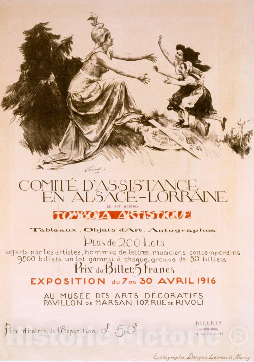 • .Vintage Poster - Comité d'assistance en Alsace - Lorraine. Tombola artistique. Exposition du 7 au 30 Avril 1916 au Musée des Arts Décoratifs, Historic Wall Art