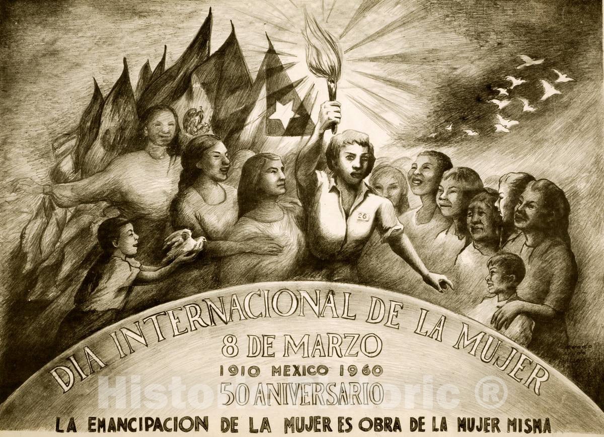 Vintage Poster - Dia internacional de la Mujer - [indistinct] Salinas., Historic Wall Art