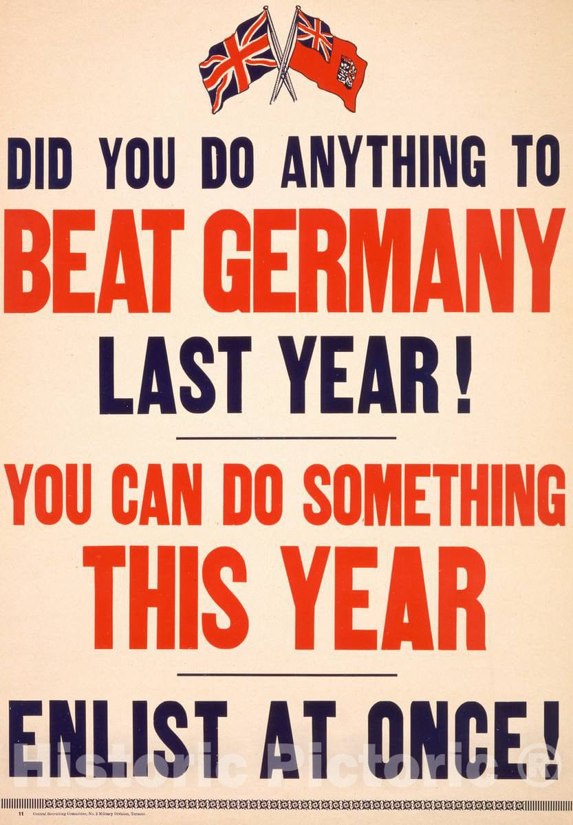 Vintage Poster - Did You do Anything to Beat Germany Last Year! You can do Something This Year. Enlist at Once!, Historic Wall Art