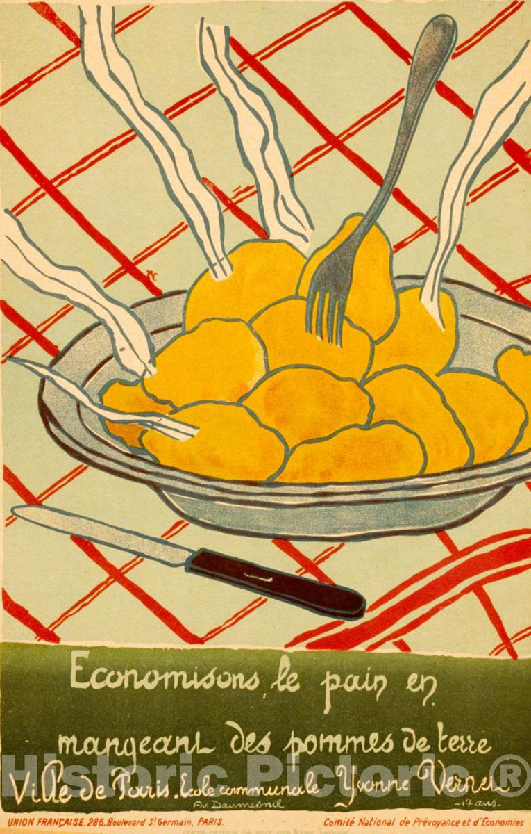 Vintage Poster - Économisons le Pain en mangeant des Pommes de Terre - Yvonne Vernet., Historic Wall Art