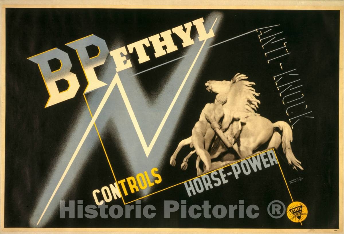 • .Vintage Poster -  BP Ethyl Anti - Knock Controls Horse - Power, Historic Wall Art