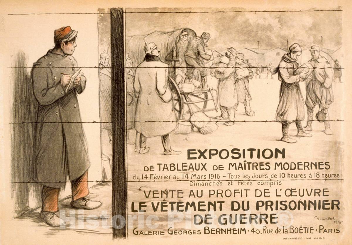 Vintage Poster - Exposition de Tableaux de maîtres modernes vente au Profit de l'oeuvre le vêtement du prisonnier de Guerre. Galerie Georges Bernheim, Historic Wall Art