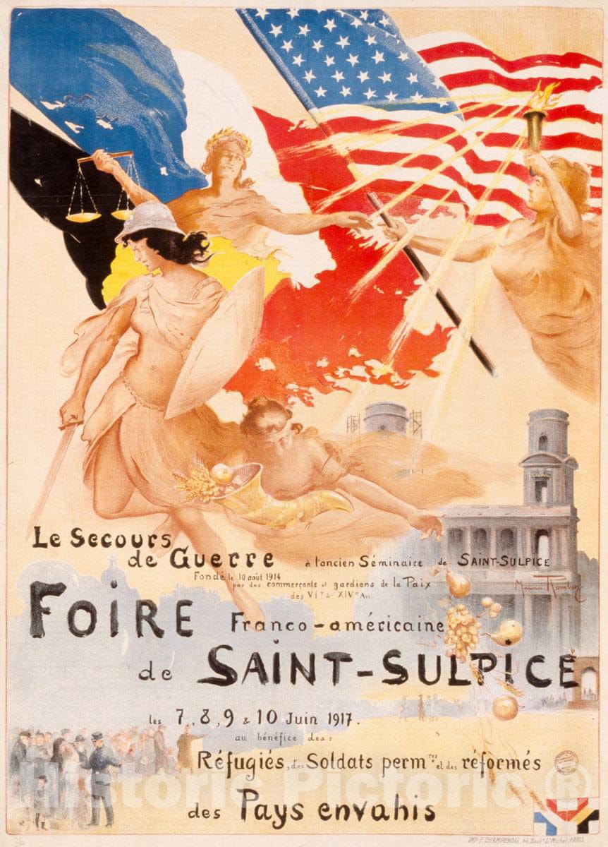 • Vintage Poster -  Foire France - Américaine de Saint - Sulpice. Le Secours de Guerre, Historic Wall Art