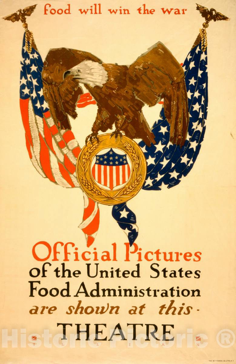 Vintage Poster - Food Will Win The war Official Pictures of The United States Food Administration are Shown at This Theatre - Illian ; The W.F. Powers Co, Historic Wall Art