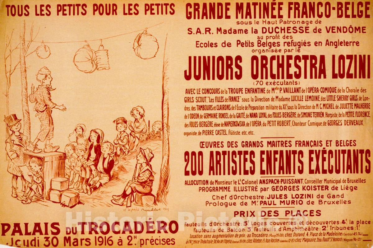 Vintage Poster - Grande matinée Franco - belge au Profit des écoles de Petits belges refugiés en Angleterre. Tous les Petits Pour les Petits. Palais du Trocadéro - Fine Art Reprint, Historic Wall Art