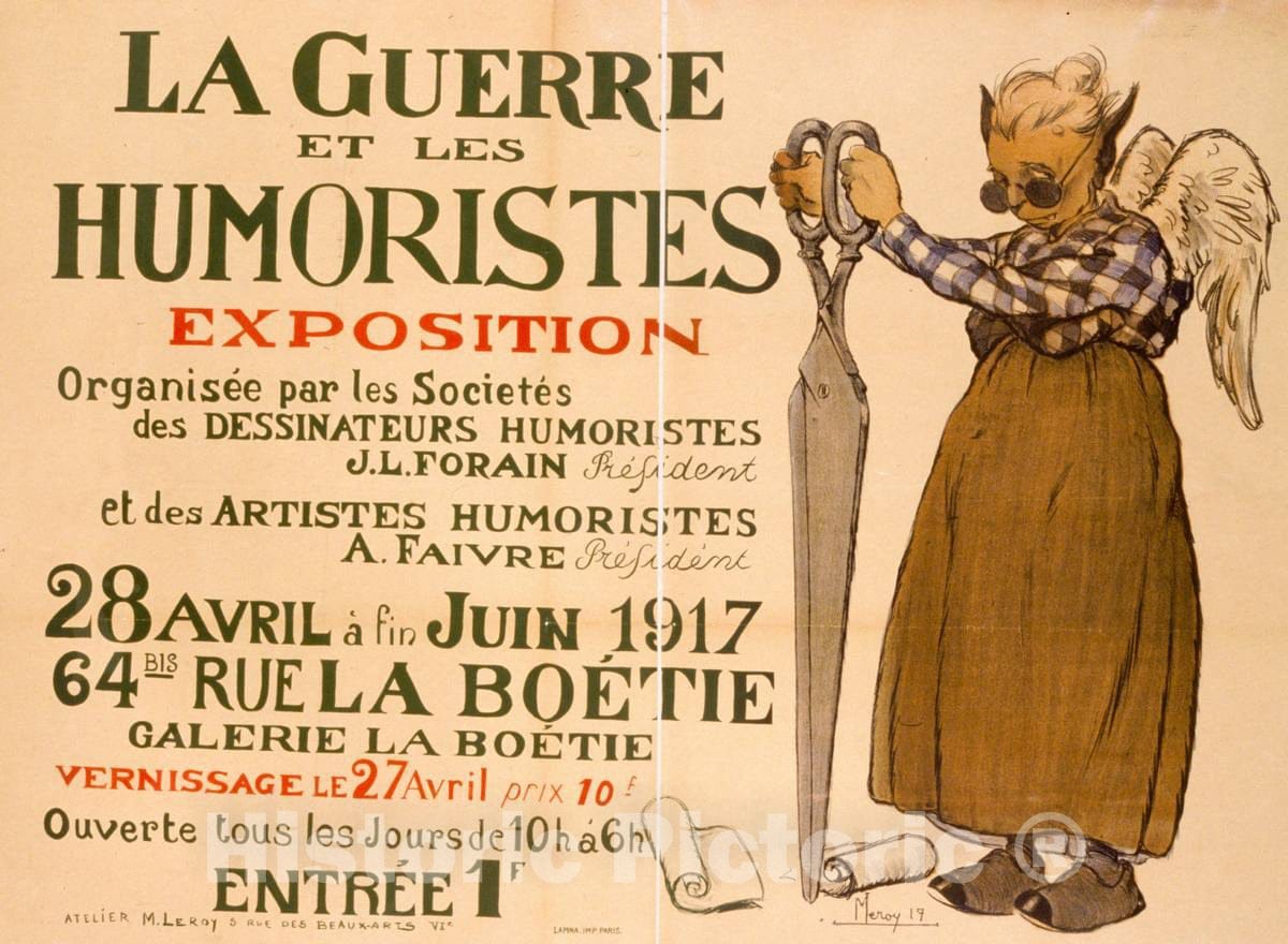 Vintage Poster - La Guerre et les humoristes. Exposition, Historic Wall Art