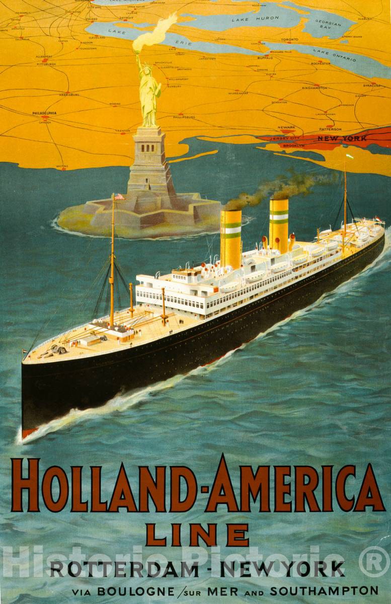Vintage Poster - Holland - America Line. Rotterdam - New York via Boulogne sur mer and Southampton, Historic Wall Art