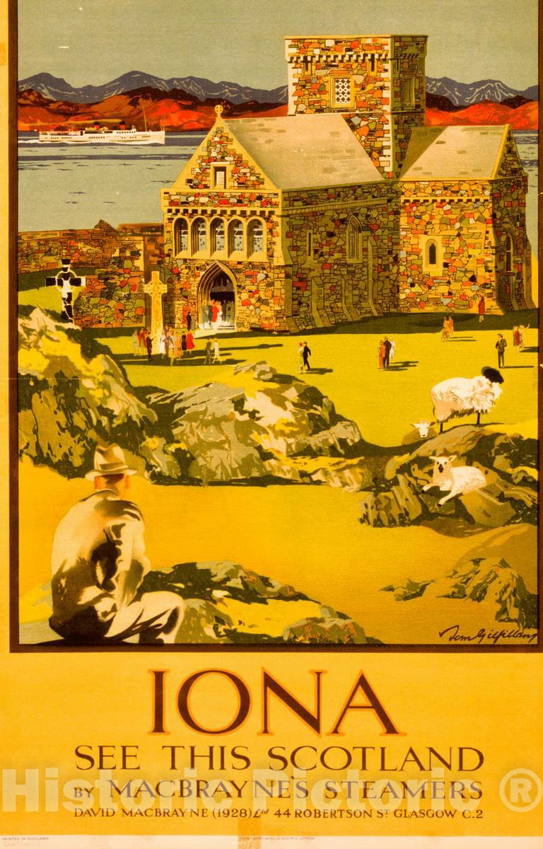 Vintage Poster - Iona - See This Scotland by MacBrayne's Steamers - Tom Gilfillany., Historic Wall Art
