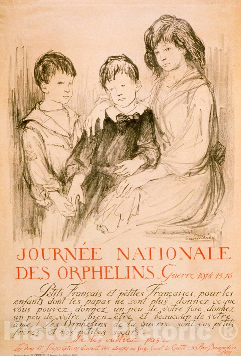 • .Vintage Poster -  Journée Nationale des orphelins. Guerre 1914. 15. 16., Historic Wall Art