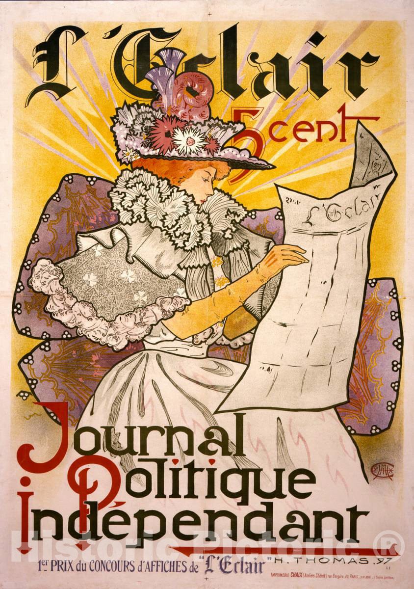 Vintage Poster - L'Eclair - Journal politique independant - H. Thomas, 97., Historic Wall Art