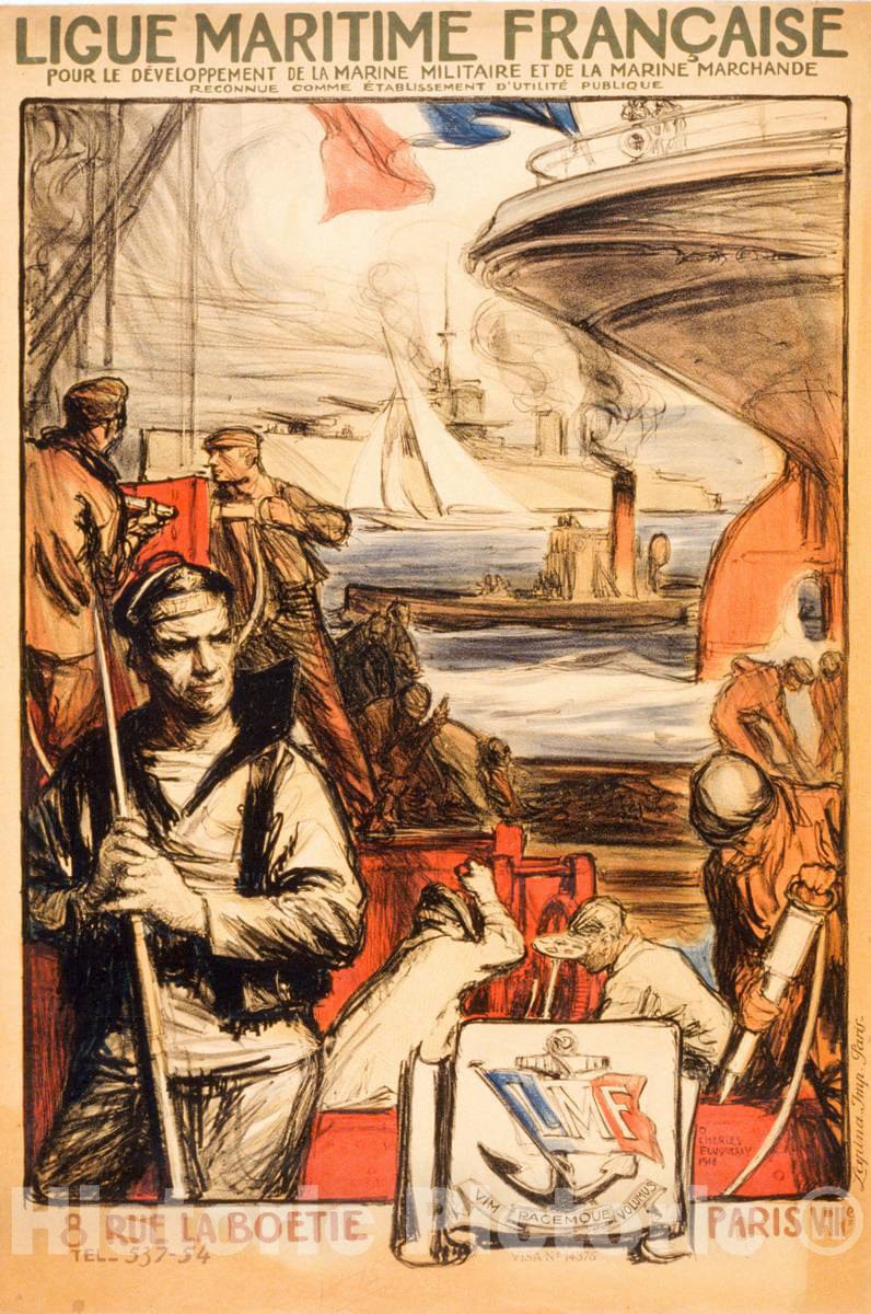 Vintage Poster - Ligue Maritime française Pour le développement de la Marine Militaire et de la Marine marchande reconnue Comme établissement d'utilité publique, Historic Wall Art