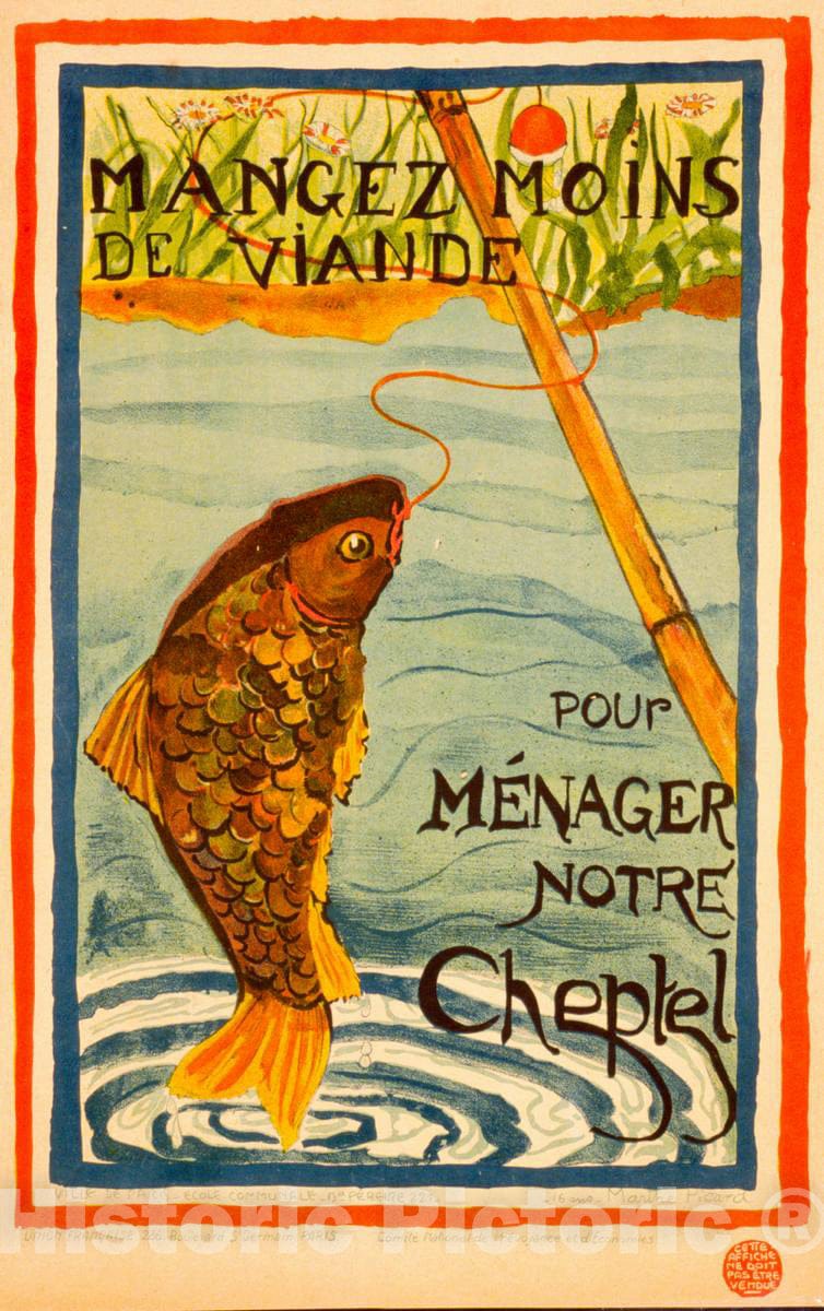 Vintage Poster - Mangez moins de viande Pour ménager Notre cheptel, Historic Wall Art