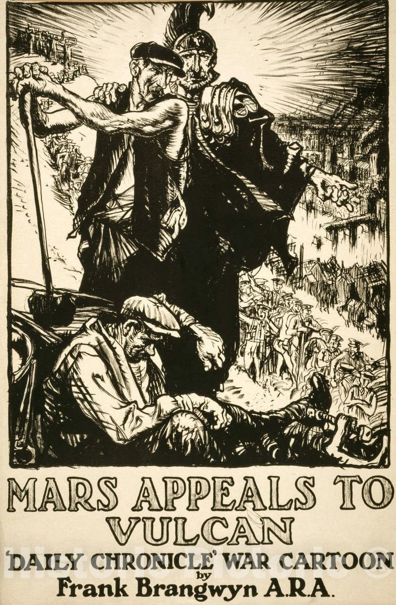 Vintage Poster - Mars Appeals to Vulcan. Daily Chronicle war Cartoon by Frank Brangwyn A.R.A. 1, Historic Wall Art