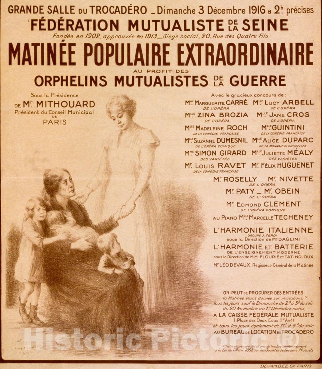 Vintage Poster - Matinée Populaire Extraordinaire au Profit des Orphelins Mutualistes de la Guerre, Historic Wall Art