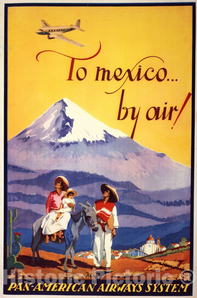 Vintage Poster - to Mexico by air! Pan American Airways System., Historic Wall Art