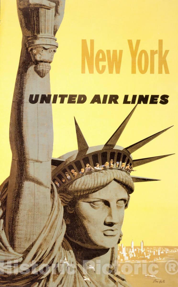 Vintage Poster - New York, United Air Lines - Stan Galli., Historic Wall Art