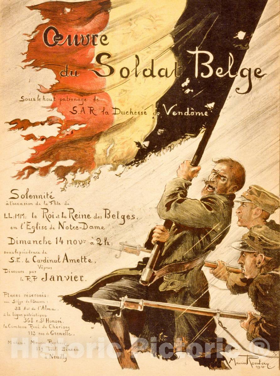 Vintage Poster - Oeuvre du Soldat belge, Historic Wall Art