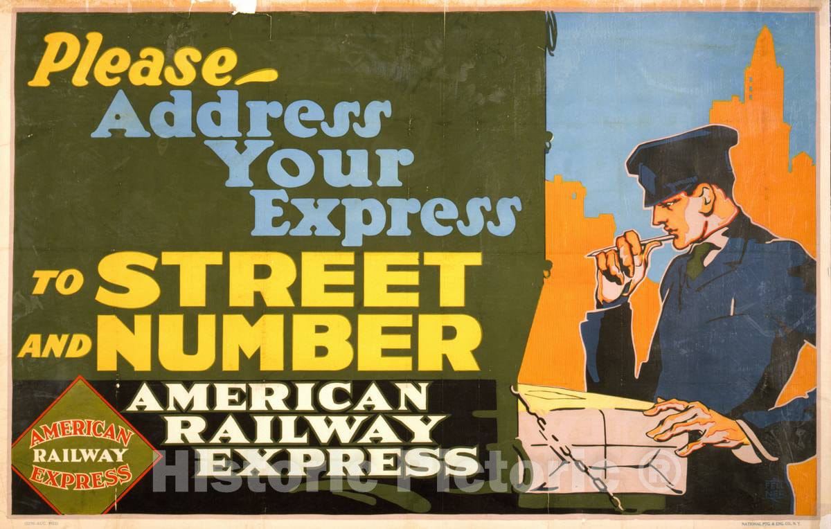 Vintage Poster - Please - Address Your Express to Street and Number American Railway Express - Fellner., Historic Wall Art