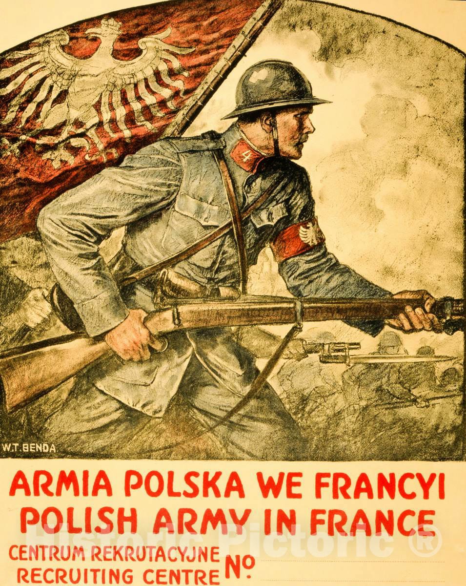 • .Vintage Poster -  Polish Army in France -  W. T. Benda., Historic Wall Art