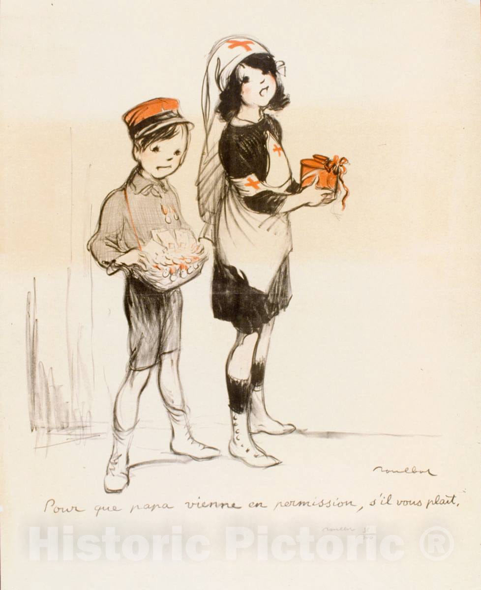 Vintage Poster - Pour que papa Vienne en Permission, s'il Vous Plait 2, Historic Wall Art