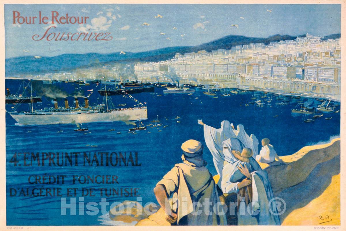 Vintage Poster - Pour le Retour, souscrivez. 4e Emprunt National. Crédit Foncier d'Algérie et de Tunisie, Historic Wall Art