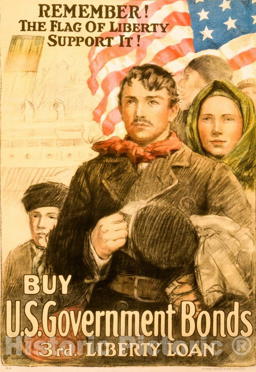 • Vintage Poster -  Remember! The Flag of Liberty - Support it! Buy U.S. Government Bonds, 3rd Liberty Loan  -  Heywood Strasser & Voigt Litho. Co, N.Y., Historic Wall Art