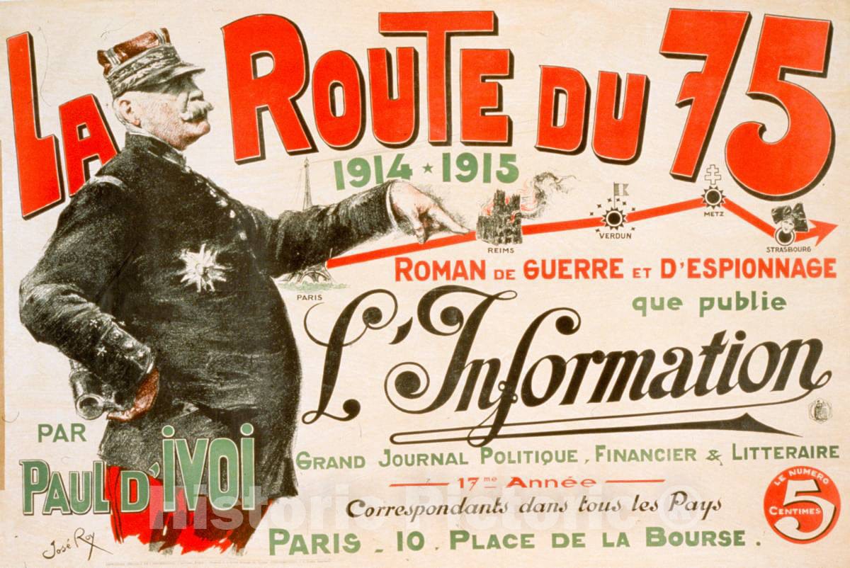 Vintage Poster - La Route du 75 19141915.' Roman de Guerre et d'espionage, par Paul D'Ivoi que publie 'L'Information', Historic Wall Art