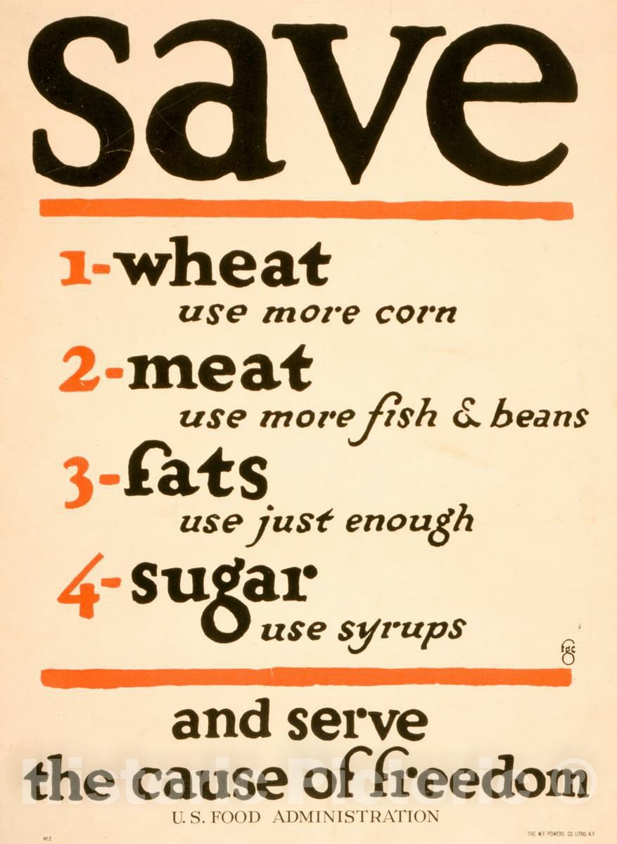 • Vintage Poster -  Save [.] and Serve The Cause of Freedom -  fgc ; The W. F. Powers Co. Litho, N.Y., Historic Wall Art