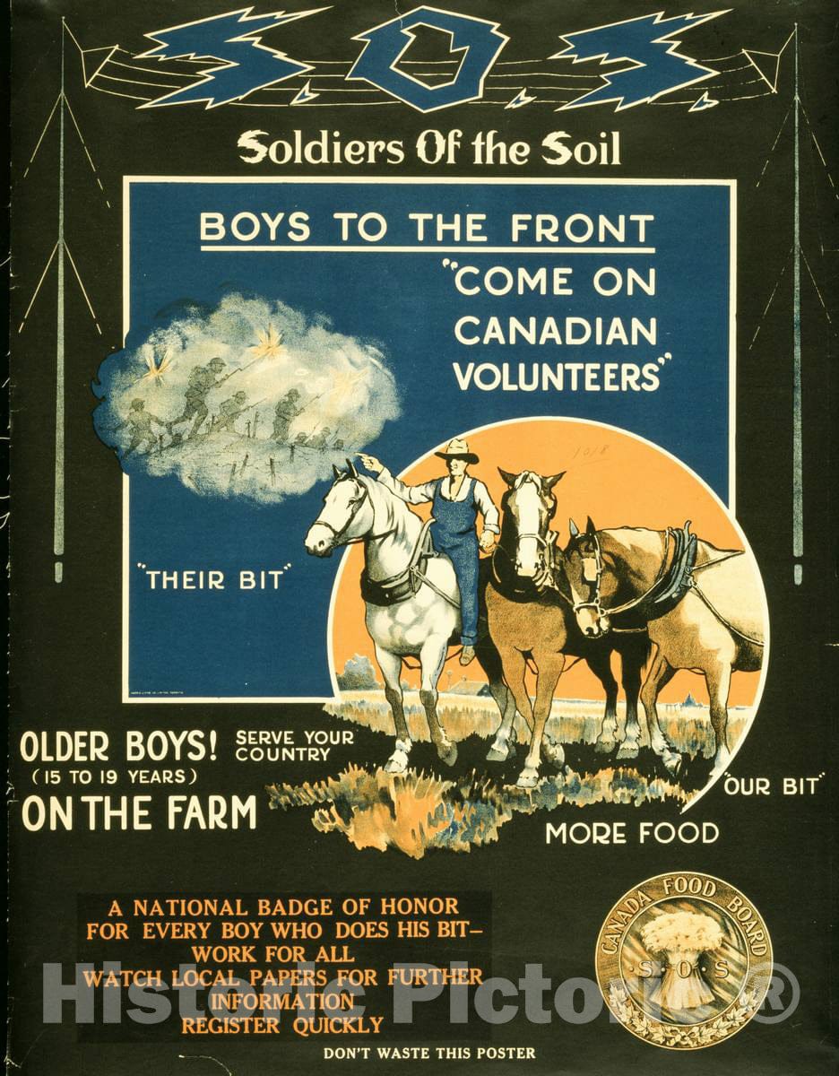 Vintage Poster - S.O.S. Soldiers of The Soil - Boys to The Front, Historic Wall Art