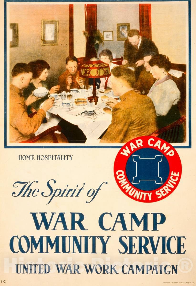 Vintage Poster - The Spirit of war Camp Community Service, United War Work Campaign - Heywood Strasser & Voigt Litho. Co. N.Y., Historic Wall Art