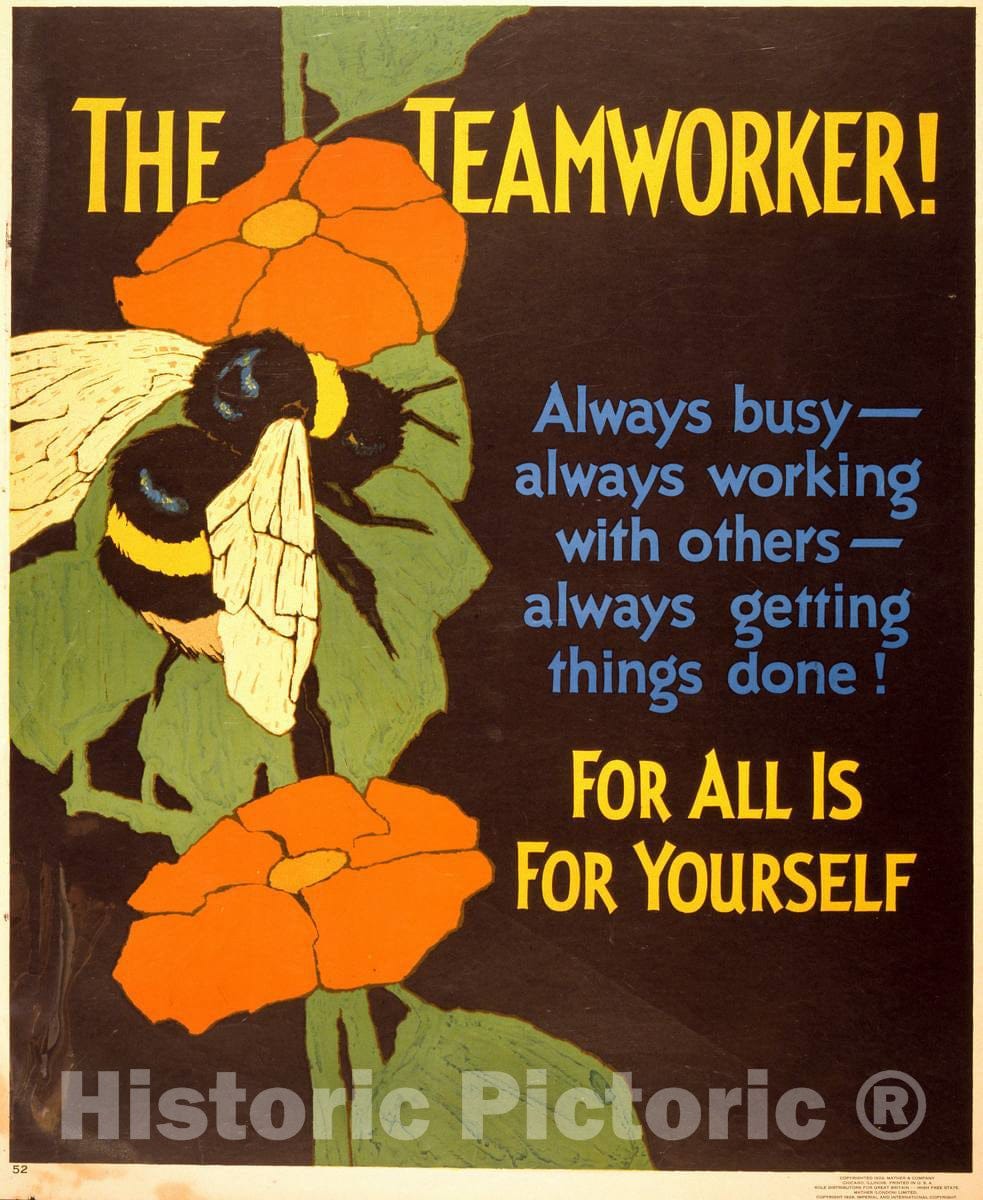 • .Vintage Poster -  The teamworker! Always Busy -  Always Working with Others -  Always Getting Things Done! for All is for Yourself., Historic Wall Art