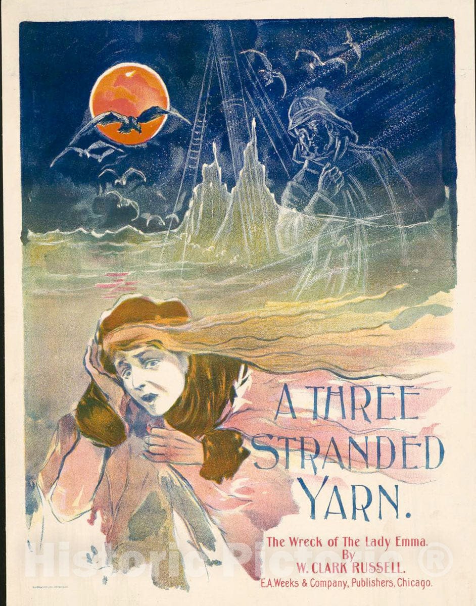 Vintage Poster - A Three Stranded Yarn : The Wreck of The Lady Emma by W. Clark Russell, Historic Wall Art